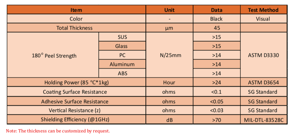 ShielditeTM CF045DB布膠帶由具有黑色涂層的導電布和背面覆有一層導電膠粘劑組成。這種黑色膠帶具有出色的遮光和抗刮性能。CF045DB不僅具有優異的體積導電性,可靠地接觸小接地區域,還增強了膠帶的物理性能,具有良好的可操作性。它柔軟且具有出色的彎曲性能。