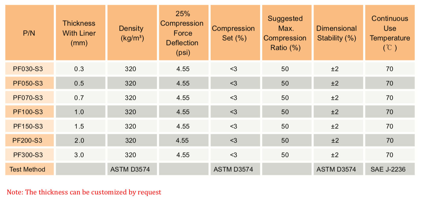 PolyplateTMPF-S3 系列是一種中等柔軟、快速回彈的泡棉,具有緩震、保護(hù)作用 密封和電子設(shè)備中的長(zhǎng)期間隙填充。S3系列泡棉具有極低的壓縮永久變形、高密封性能和優(yōu)異的沖擊吸收性能。
