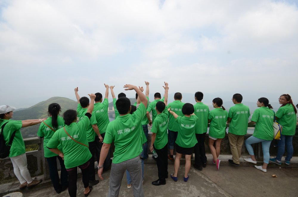 活動(dòng)的第一個(gè)項(xiàng)目是爬山。家湘美全國(guó)營(yíng)銷中心分成“快樂隊(duì)”與“開拓隊(duì)”,相互比拼看哪個(gè)團(tuán)隊(duì)最先到達(dá)山頂。看似簡(jiǎn)單的活動(dòng),卻因?yàn)閳F(tuán)隊(duì)成員的老少兼顧而變得復(fù)雜起來(lái)。